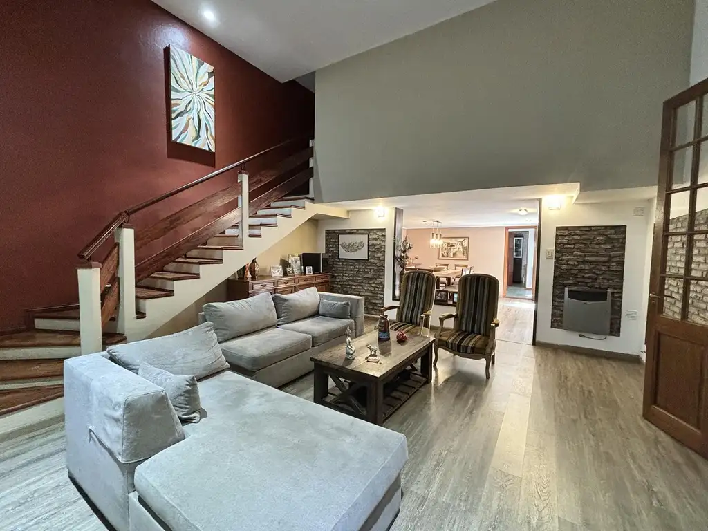Se ingresa por un recibidor que nos guía al amplio y luminoso living con un gran ventanal, el cual está semi integrado con el comedor igualmente luminoso, ya que tiene acceso al patio interno por una puerta de vidrio corrediza. Todos los ambientes de la casa desembocan al patio interno que provee luz natural y cuenta con un parrillero. Continuando, en la plata baja se encuentra la cocina, integrada al comedor diario, con un baño y un lavadero semi separado.