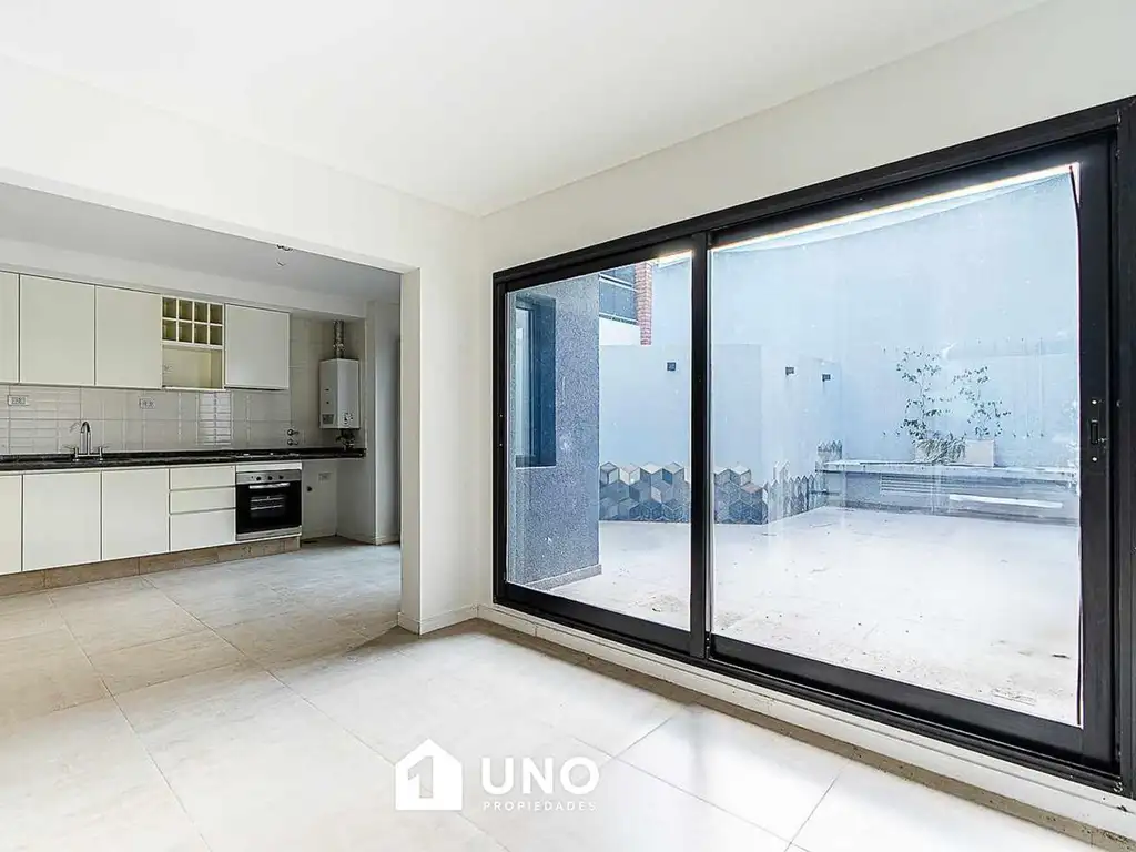 Oficina/departamento con amplio patio exclusivo, a estrenar. Ingreso por puerta blindada al estar/comedor piso porcelanato y aberturas con DVH, cocina totalmente equipada anafe de 4 hornallas horno embutido con conexión para lavarropas, dormitorio con piso flotante de alto transito y placard con interiores completos hoja espejada, antebaño y baño completo. El patio orienta al contrafrente norte.
