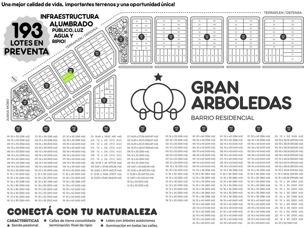 Cada terreno cuenta con una superficie de 300 m² (10 metros de frente por 30 metros de fondo), ofreciendo un amplio espacio para construir la casa de tus sueños en una zona tranquila, rodeada de naturaleza y con excelente plusvalía.