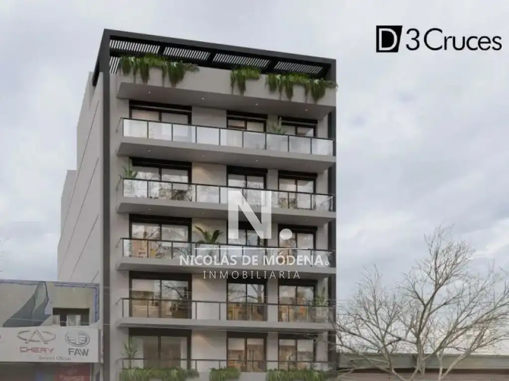 D3 Cruces es un edificio que consta de 5 plantas donde podremos encontrar unidades de Monoambiente, 1 dormitorio y de 2 dormitorios.