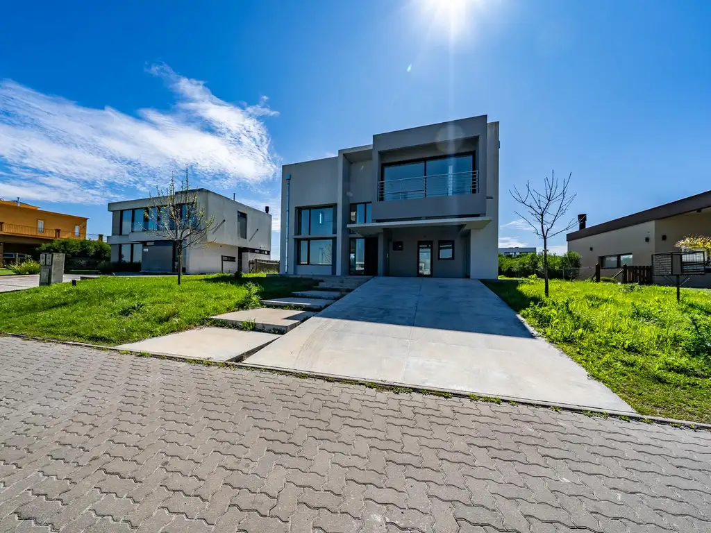 El inmueble implantado en el lote N 221 de 772,68 m2, se desarrolla en dos plantas de 285 m2 totales, en donde 228 m2 son cubiertos y 57 m2 semicubiertos integrados estos últimos por el garaje al frente y la galería al contrafrente. Diseño moderno con techo en doble altura en living, hermosos detalles de terminación como gargantas de iluminación y amplios ventanales con vidrios DVH.