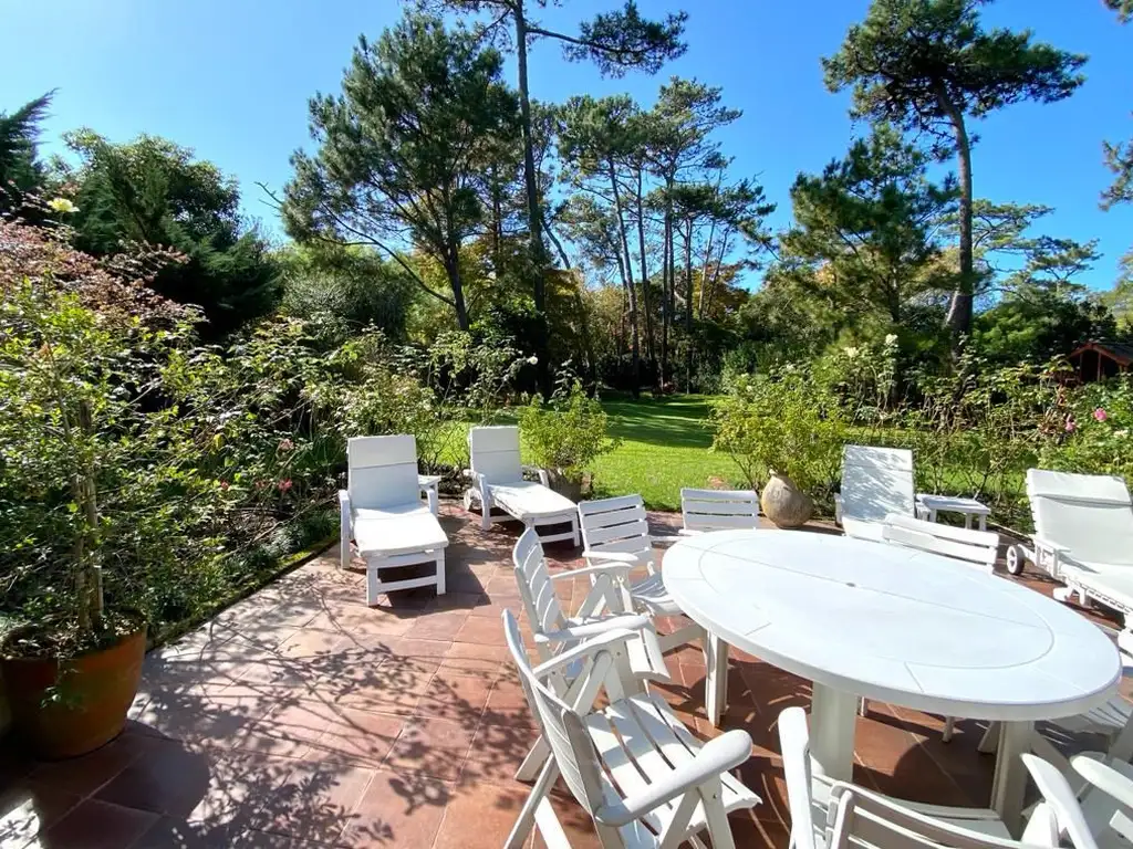 Comedor con doble circulación, hacia el living y cocina. 3 dormitorios con dos baños, y una máster suite con salida hacia el jardín.
