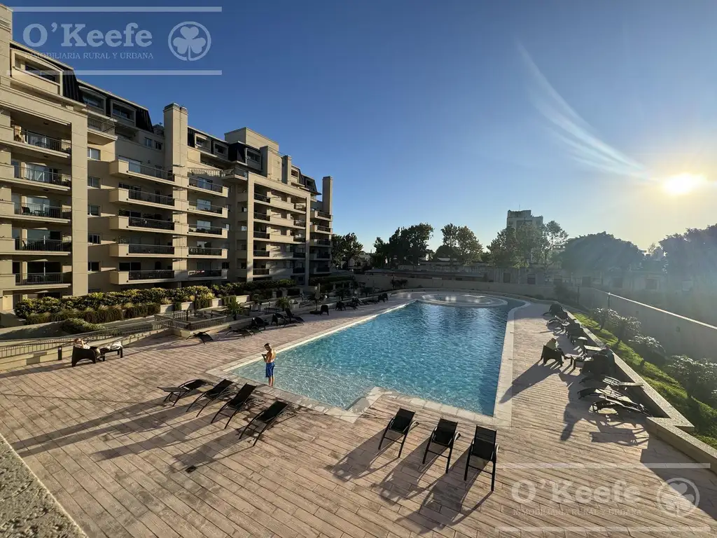 Vistas abiertas al pulmón con vista a la piscina del complejo y a su arboleda perimetral.