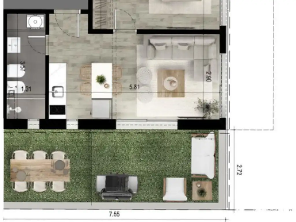 El interior del apartamento incluye un área de living y comedor bien iluminada, que se conecta con un agradable patio, perfecto para disfrutar del aire libre en la tranquilidad del hogar. La cocina, de estilo definido, es práctica y está equipada para facilitar la preparación de comidas, haciendo que cada momento en este espacio sea cómodo y eficiente.