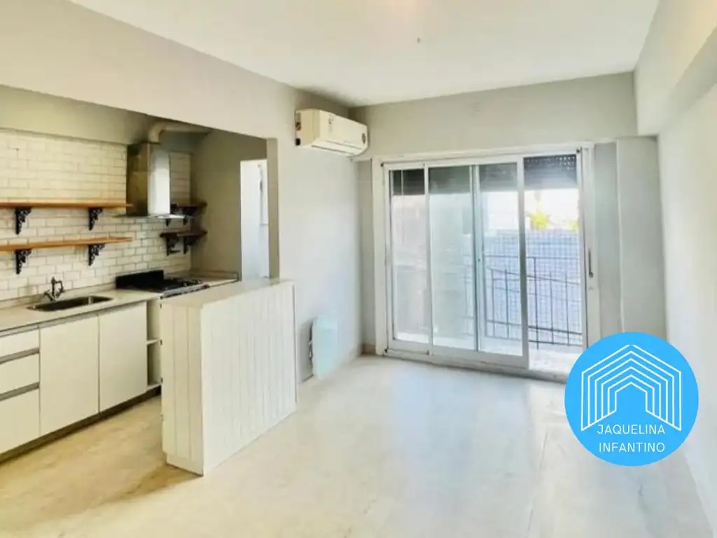 Es un primer piso al frente con ascensor. Al ingreso nos encontramos con living - comedor y cocina integrada, separada por una barra con espacio de guardado en su espacio inferior. El living da acceso al balcón que se encuentra al frente a través de puerta - ventana.