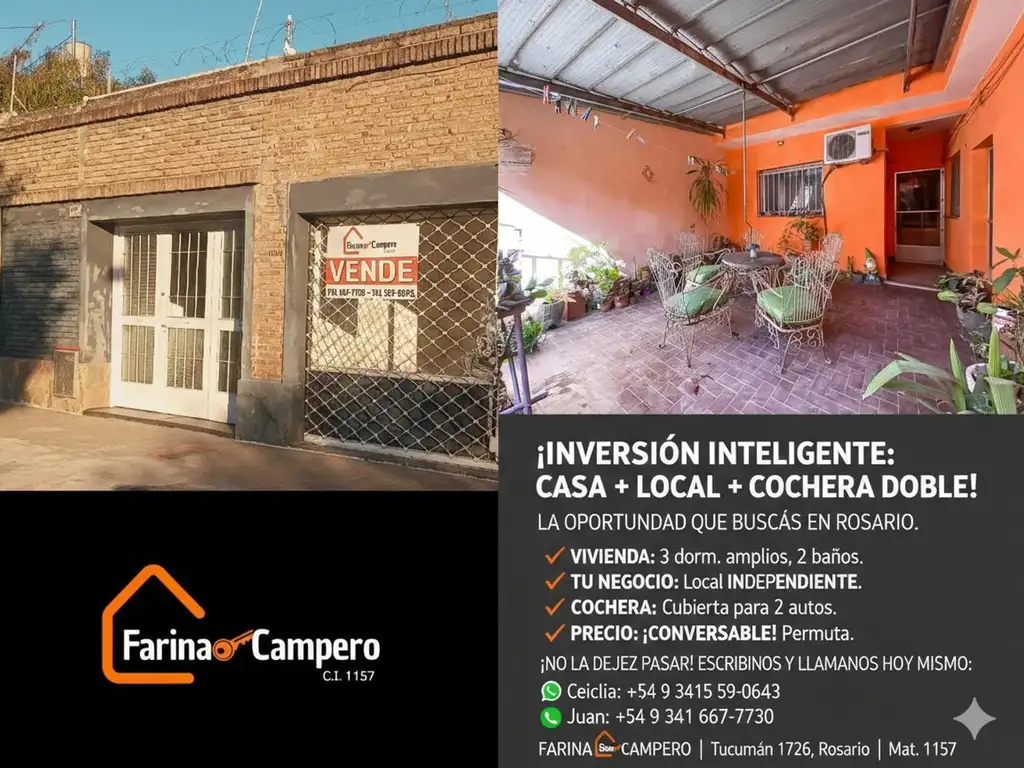 Propiedad polifuncional única en Rosario. Ubicada sobre calle Montevideo (entre Magallanes y Garzón), esta unidad combina la calidez de un hogar familiar con el potencial comercial de un local independiente.