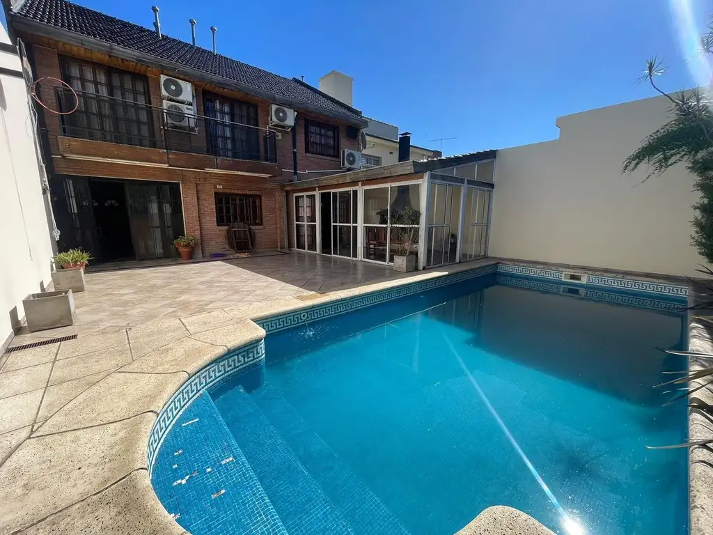 En planta baja cuenta con living comedor, muy amplio, toilette con antebaño, bajo escalera con espacio de guardado, cocina comedor diario con mucho espacio de guardado, quincho con parrilla, fondo libre con piscina, garage cubierto para 2 vehículos, (al frente descubierto entra otro) y lavadero cubierto.