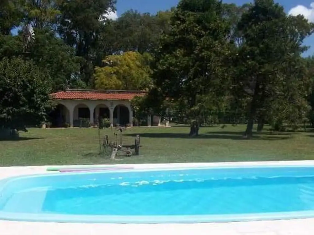 _ La misma posee cocina equipada con muebles bajo mesada, toilette, living, comedor, dos dormitorios y un baño completo. Amplia y luminosa, cuenta con parrilla, pileta, galpón de guardado y un amplio predio con boxes para caballos, una casa para caseros.