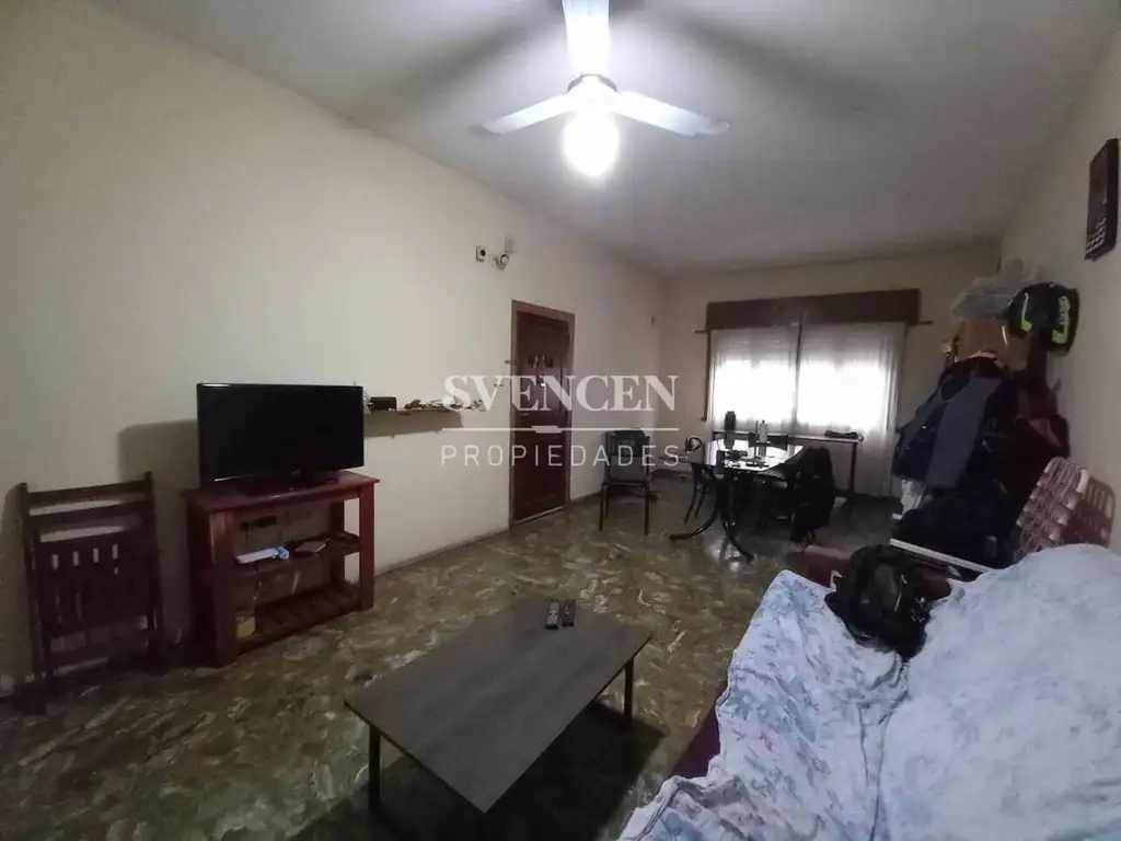 Al entrar vemos el gran living/comedor con piso de piedra hoy dificil de encontrar en gran estado. Cocina comedor completa con salida a patio.