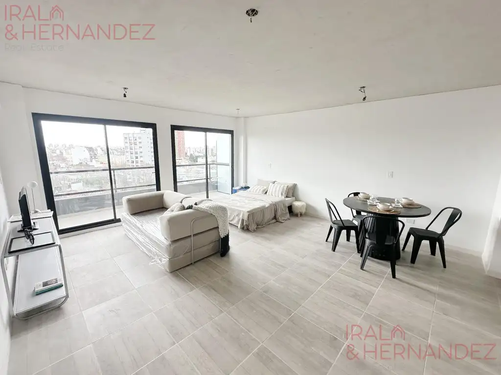 Monoambiente muy luminoso gracias a su amplia carpintería de aluminio, con balcón para disfrutar de la vista.