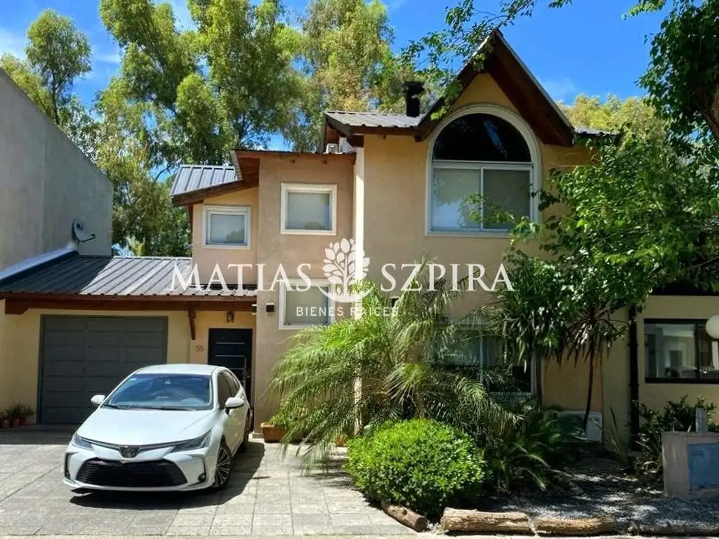 Hermosa casa estilo chalet en Barrio Cerrado Agustinas I. Desarrollada en dos plantas, en planta baja posee living, cocina comedor amueblada con salida al parque, toilette y habitación en suite con bañera y placard. En planta alta encontramos un hall distribuidor/entrepiso que balconea al living, con posibilidad de utilizarse como escritorio, dos dormitorios con placard y baño completo con bacha doble y compartimentado con bañera al que se accede desde ambos dormitorios. En su exterior posee galería techada con parrilla, lavadero y hermoso parque libre. Calefacción por radiadores y splits frío/calor en todos los ambientes. Garage cubierto para dos autos y descubiertos para dos más. Excelente calidad constructiva. El Barrio cuenta con seguridad privada 24 hs, cerco eléctrico perimetral, cámaras y plaza con juegos para niños. Superficie total 300 m2 (superficie cubierta 175 m2). Libre gastos escritura.