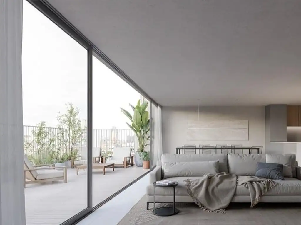 Loft de 33m2 con balcón al frente. Detalles en Hormigón Visto. Aberturas Unidades en Aluminio Anodizado. Vidrio DVH. Control Solar. Pisos de Porcelanato de primera línea. Mesada cocina y baños en Pura Stone o similar. Grifería FV o similar. Artefactos Sanitarios Ferrum o similar. Mampara Ducha Blinde