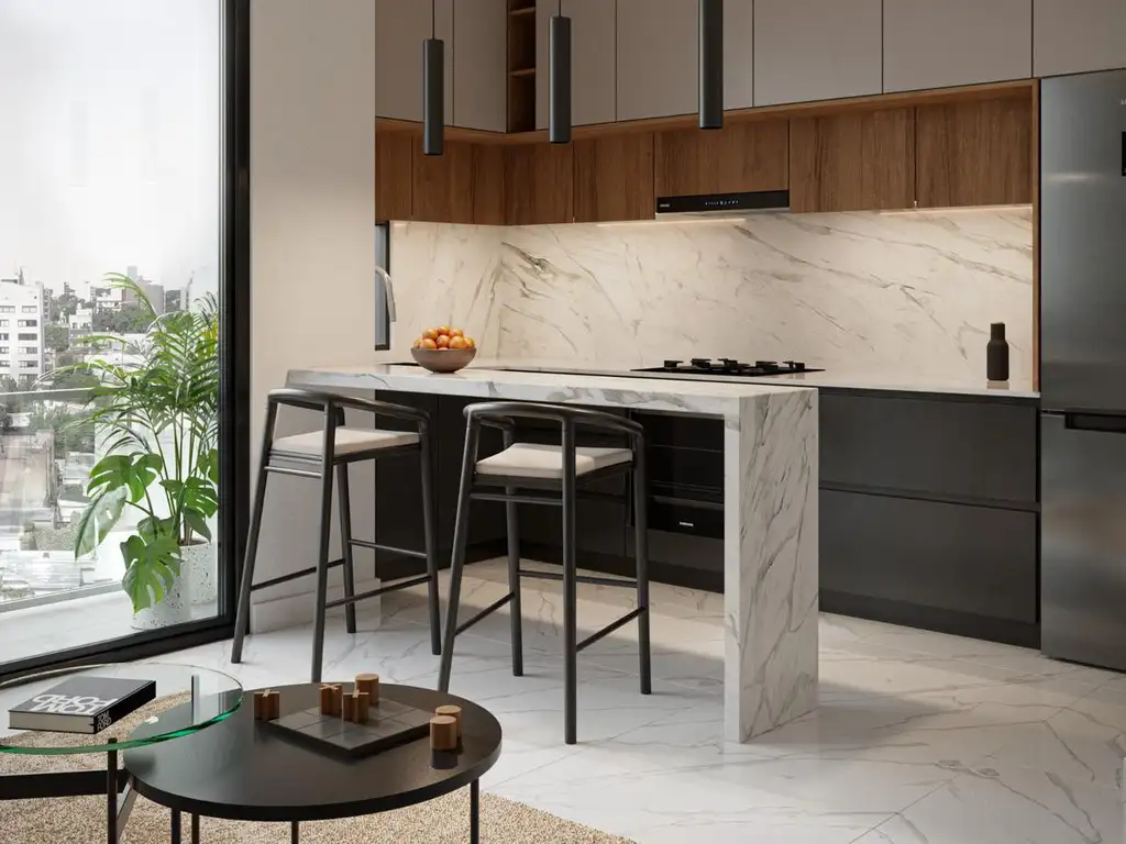 _ El mismo dispondrá cocina equipada con muebles sobre y bajo mesada, un gran living comedor, un dormitorio con placard empotrado y un baño completo con ducha. Amplio y luminoso, asimismo contará con balcón semi cubierto y pre instalación para equipo de aire acondicionado. El edificio contará con terraza provista con salón de usos múltiples, parrilla de uso compartido y piscina con borde infinito.