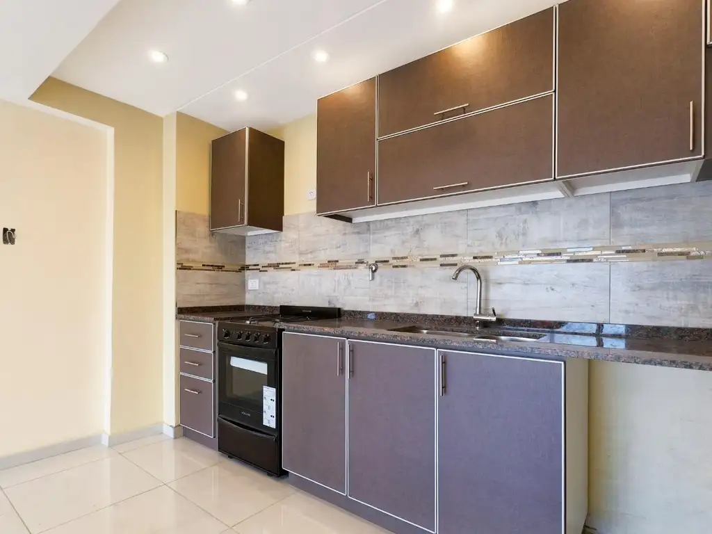 Cocina de Vanguardia, en cuanto a prestación y funcionalidad, Mesada de Granito, Bacha Doble de Acero Inoxidable. Cocina 4 hornallas y Horno a Gas Natural de primera marca, Termotanque eléctrico de alta Recuperación Marca Saiar ,con muebles de bajo mesada y alacenas ,todo en melamina de buen gusto, con herrajes y tapa cantos de aluminio anonizado.