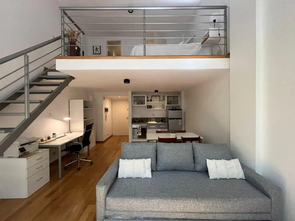 _ El mismo posee cocina equipada con muebles sobre y bajo mesada, toilette, un espacio principal con espacios de guardado empotrados, dormitorio en entrepiso con vestidor y un baño completo . Luminoso, cuenta con balcón y muy buena ventilación natural.