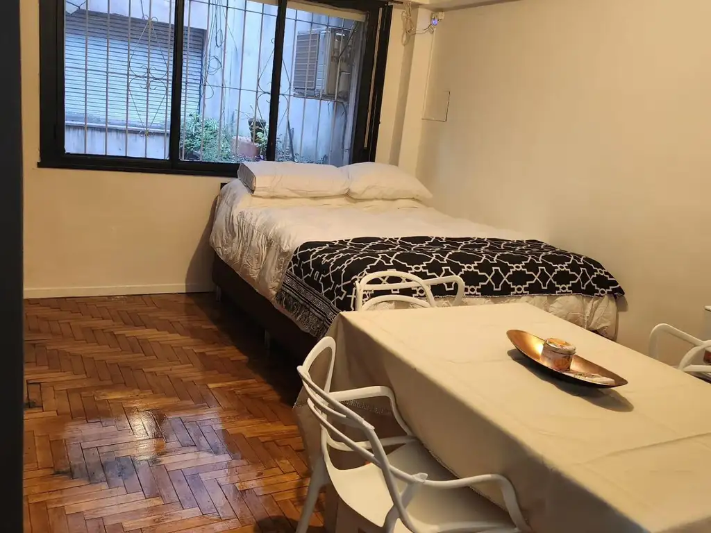 _ El mismo posee cocina tipo kitchenette equipada con muebles sobre y bajo mesada, un espacio principal con espacios de guardado empotrados y un baño completo. Luminoso, cuenta con equipo de aire acondicionado y muy buena ventilación natural.