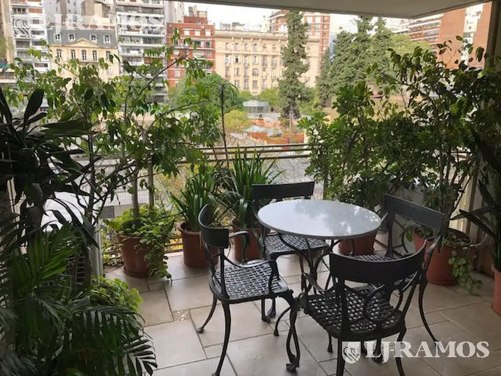 Palier privado. Muy buena recepción apaisada, doble living, comedor separado. Escritorio o cuarto dormitorio. Todo con vista al exterior. Balcón aterrazado y grandes ventanales hacia el frente linda vista abierta a la biblioteca. Toilette y placard de visitas.