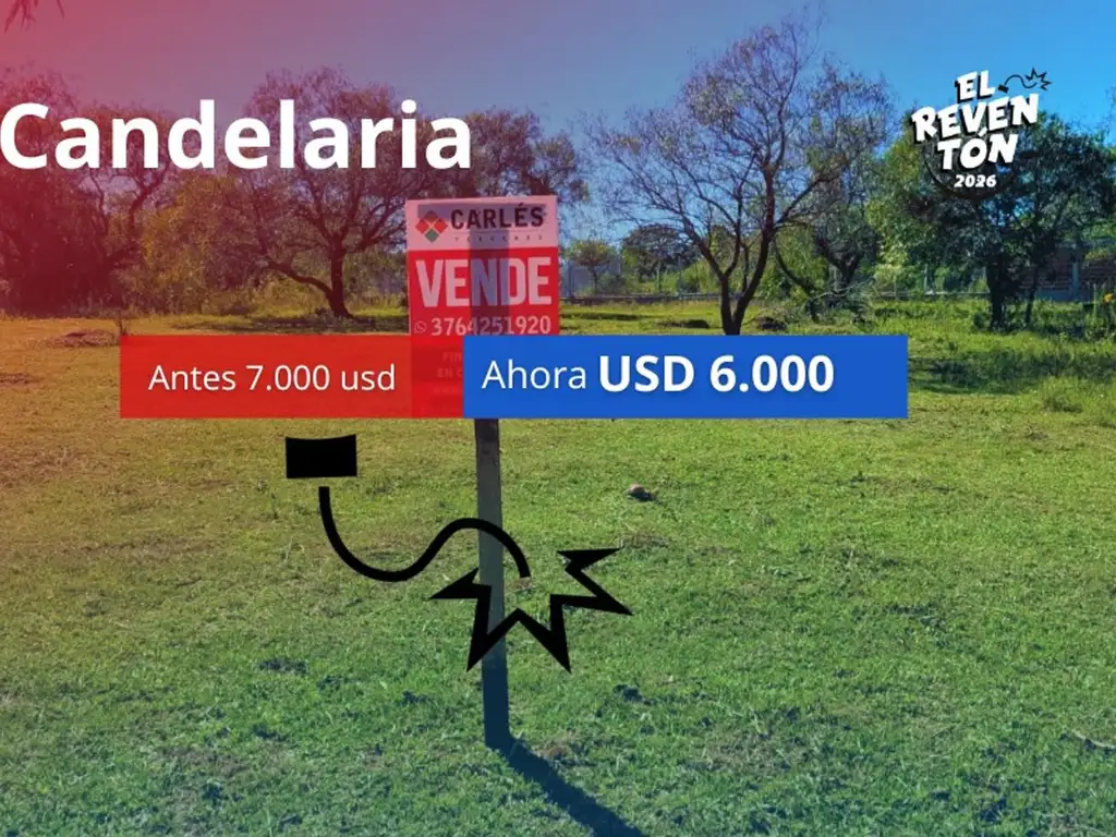 Hermoso terreno en Candelaria a 4 cuadras de Ruta 12 fácil acceso. Oportunidad para inversionistas. ¡Planes de financiación flexibles! Precio + gastos de comisión inmobiliaria, boleto de compraventa, impuestos de sellos, gastos y honorarios de escrituración.