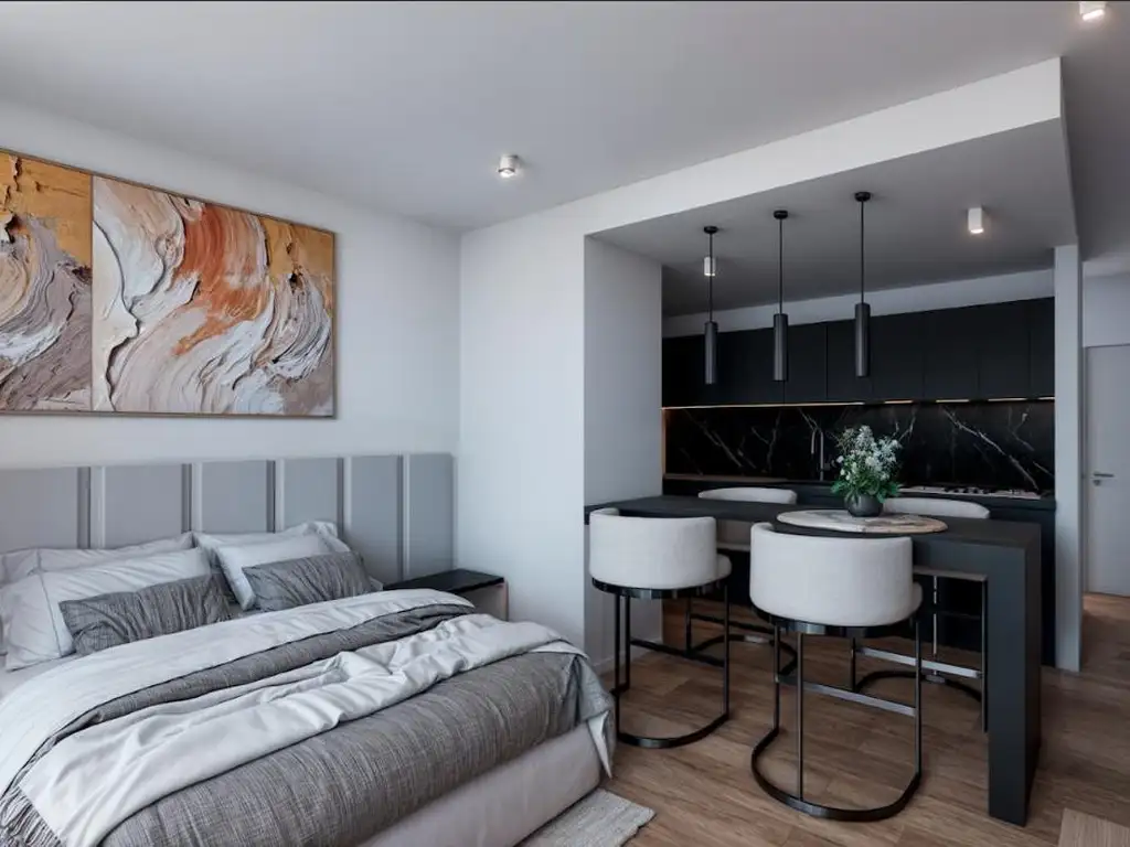 _ El mismo posee cocina equipada con muebles sobre y bajo mesada integrada al espacio principal y un baño completo. Amplio y luminoso, contará también con balcón y pre instalación para equipo de aire acondicionado.