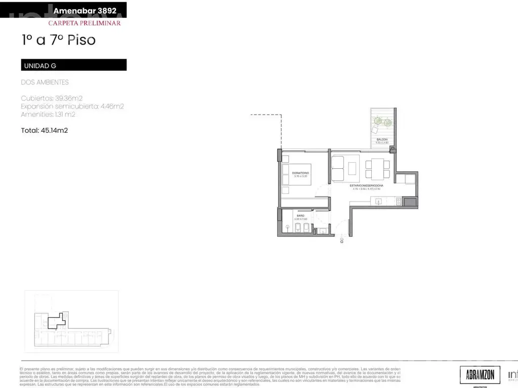 Todas las imágenes, planos, descripciones, y características indicadas son meramente referenciales e ilustrativas y podrán ser modificadas sin previo aviso. Las superficies indicadas son estimadas. Las superficies y medidas definitivas surgirán del plano de mensura final aprobado oportunamente por el GCBA. Las fechas de inicio de obra o posesión son estimadas, podrán ser reprogramadas por la Dirección de obra y dependerán a su vez de un proceso de aprobaciones municipales u otros organismos intervinientes. Los precios indicados podrán modificarse sin previo aviso. El interesado deberá realizar las verificaciones respectivas previamente a la realización de cualquier operación, requiriendo por sí o sus profesionales las copias necesarias de la documentación que corresponda.