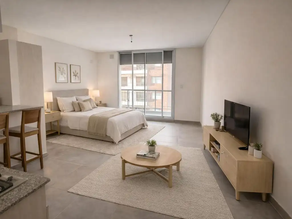 SOBRE INMUEBLE: El departamento se sitúa en el 6o piso y cuenta con un diseño funcional que integra una cocina totalmente equipada con un living comedor, un baño completo y un balcón al frente hacia el Oeste que proporciona vistas despejadas y excelente iluminación natural.