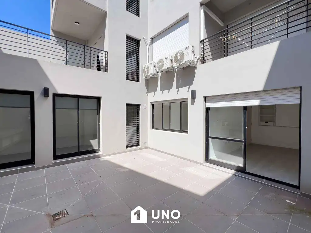 Departamento de 2 dormitorios a estrenar, con gran patio de 32 mts y orientacion este. Ingreso por la cocina/comedor con salida al patio. La cocina está totalmente equipada, ambos dormitorios cuentan con placard y acceso al patio. Baño y antebaño. Azotea con quincho, parrillero y solárium.