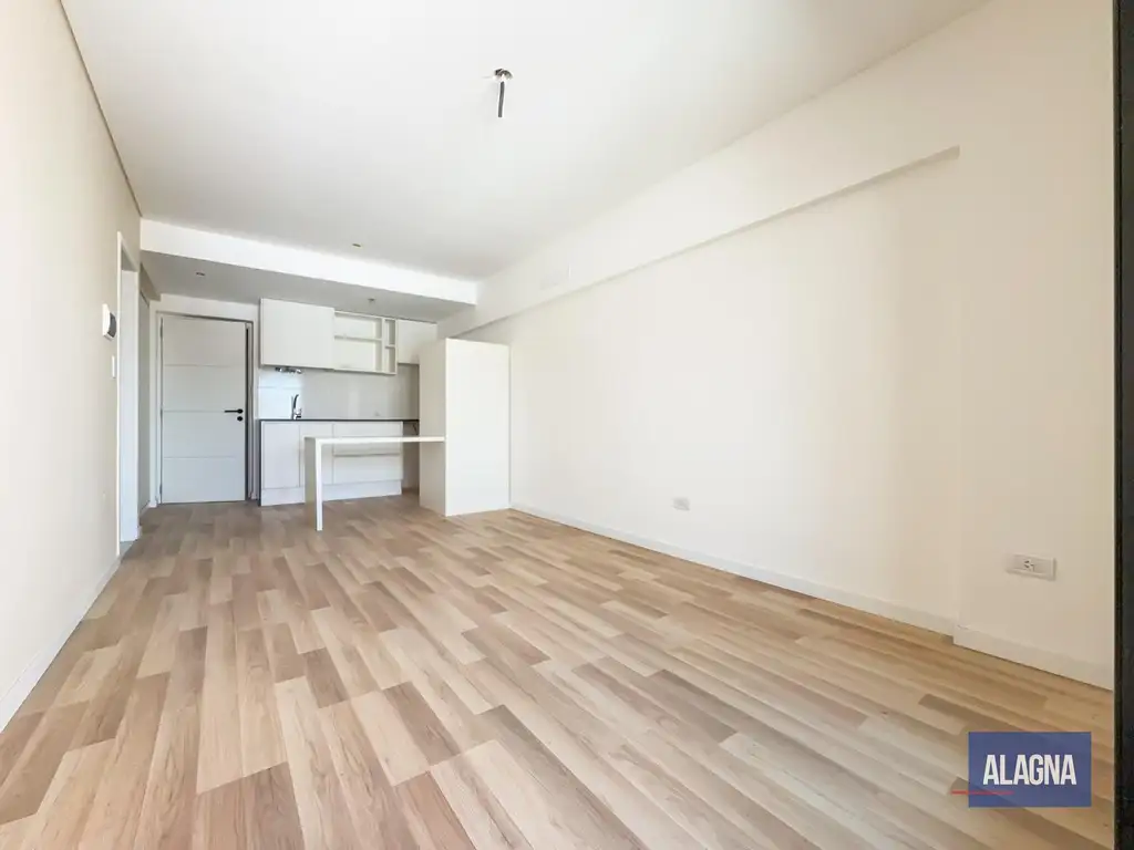Caracteristicas: ingreso a ambiente unico con cocina semi-integrada separada por barra, muebles bajo mesada y alacenas. Ambiente unico con salida a balcón al frente con vista despejada a la ciudad.