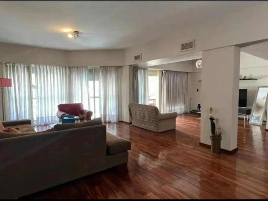Departamento muy amplio, con doble ingreso y dos ascensores para cada ingreso. Gran living comedor con espacio para poder dividir y tener un espacio de escritorio. Salida a Balcón terraza. cocina comedor grande, con salida a patio con parrillero y acceso a la habitación de servicio y baño de servicio. Cuatro dormitorios, con ventanas al patio, todas con placares. baño completo de uso común. El dormitorio principal tiene vestidor y baño en suite con jacuzzi. Muy buen estado, mucha amplitud e independencia de ambientes. Cochera en subsuelo.