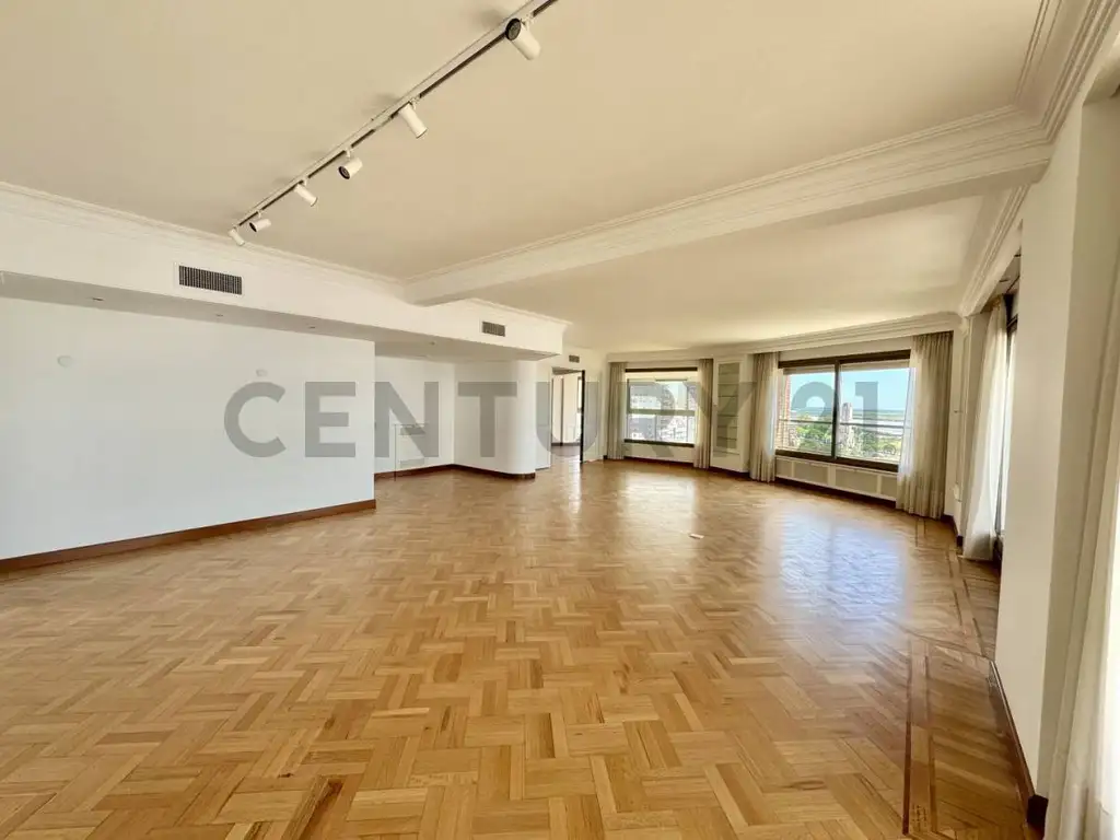 Living: un espacio amplio con piso de parquet impecable, grandes ventanales y detalles de diseño que crean un ambiente cálido y elegante.