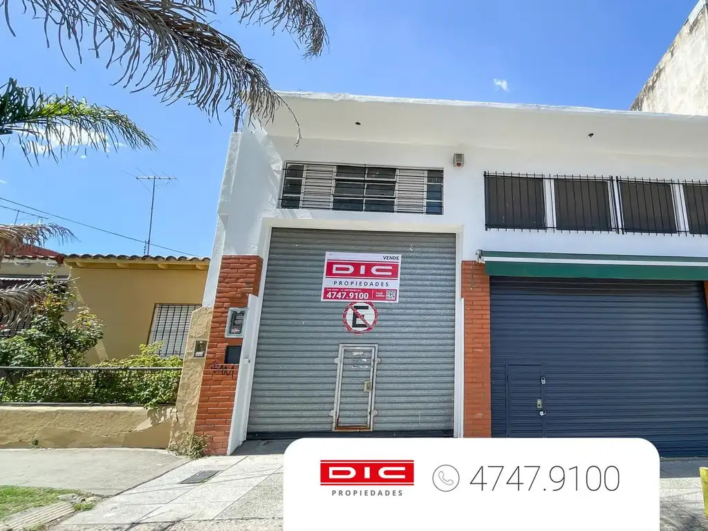 Desde el ingreso por el portón de doble altura se accede a un depósito / taller de gran amplitud que cuenta al fondo con una oficina con otro patio y jardín de mayor tamaño. Luego en planta alta ofrece otra oficina más y 2 vestuarios.