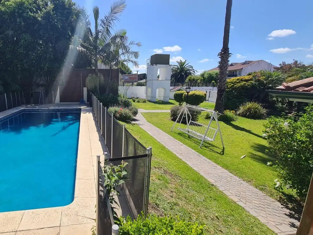 AMPLIO JARDIN CON CASCADA, PILETA REVESTIDA EN VENECITA, SAUNA , BAÑO Y EN EL FONDO DEL PREDIO, CANILES PARA PERROS.