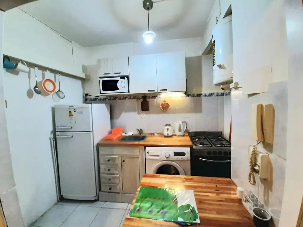 Departamento de 1 y 1/2 ambiente, equipado y amoblado para 3 personas. Dormitorio con vista a pulmón del edificio. Esta ubicado a 1 cuadra del Alto Palermo. Amoblado con lavarropas.