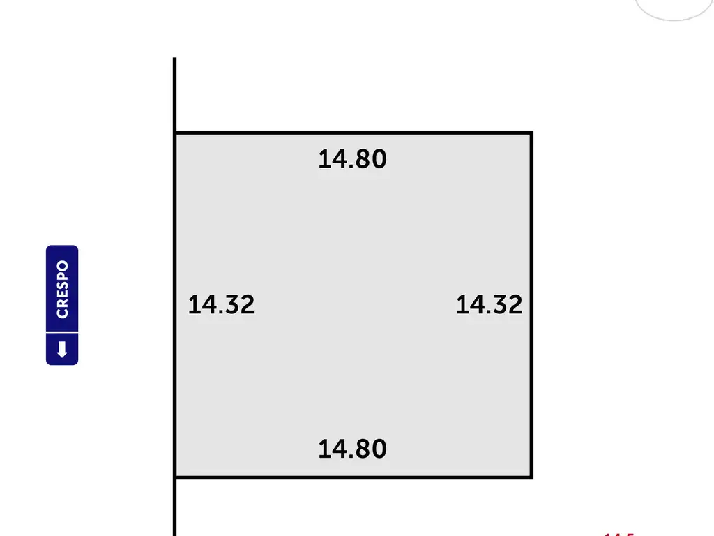 Lote ubicado en calle Crespo entre Mendoza y 3 de febrero con orientacion oeste. Se compone de 14. 32m de frente por 14. 80m de fondo, formando una superficie aproximada de 212 metros cuadrados. Se pueden construir hasta 14. 5 metros de altura PB 4 pisos.