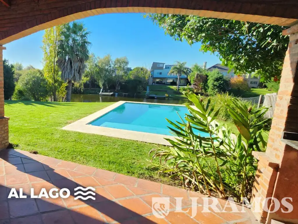 Barrio cerrado Santa Clara, del Complejo Villanueva, Partido de Tigre.Casa de estilo clásico, de sólida calidad de construcción, a la laguna con pileta sobre terreno de 820m2 con Orientación Norte a Nor-Este (de las mejores, con sol en el jardín y sombra en la galería).
