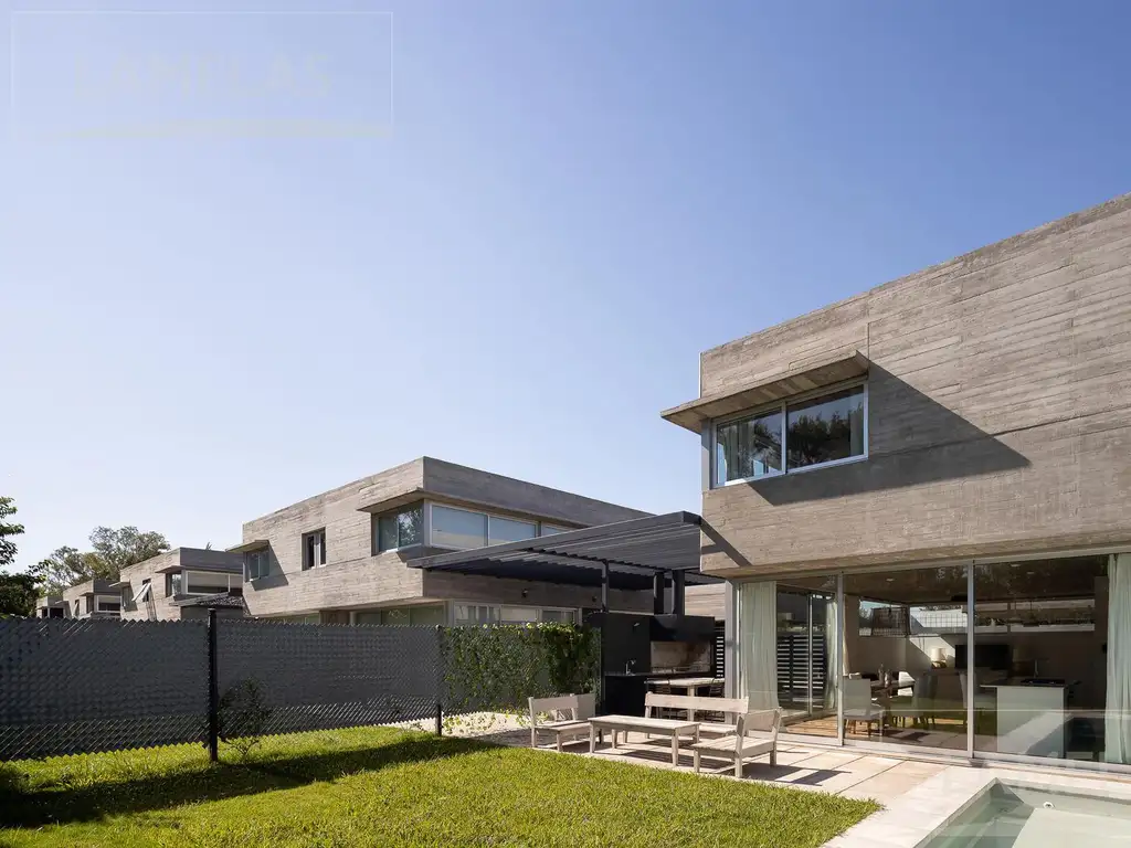 La propiedad posee 151m2 cubiertos distribuidos en dos plantas, 22m2 semicubiertos y 32m2 de pérgola. Cuenta con tres dormitorios más espacio de escritorio/comodín y 245m2 de terreno con jardín y pileta propios de la unidad.