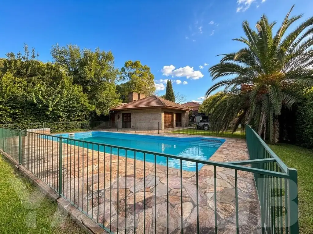 _ Quincho espacioso con parrilla, un baño completo con vestuario y sala de herramientas. Amplia y luminosa, cuenta con gran patio con pileta de 12m x 5m. Dos espacios cubiertos de guardacoches con una capacidad para tres vehículos.