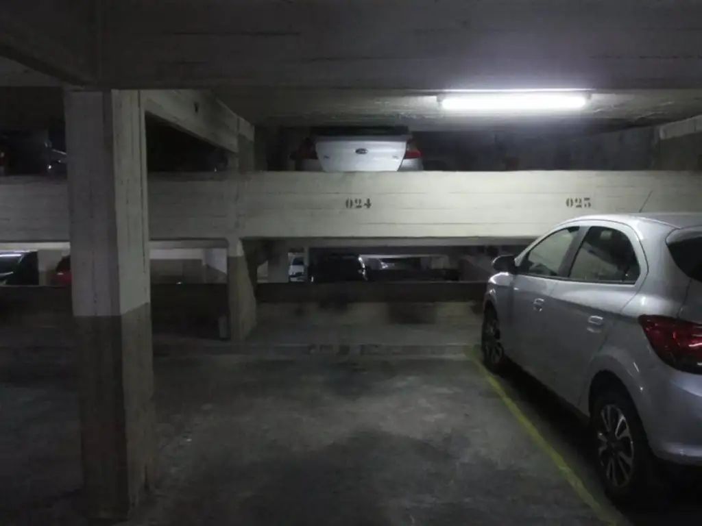 Cochera cubierta y fija de 12.35m2. 1º subsuelo. Acceso por rampa fija. Antigüedad 20 años. Expensas $54.000 (febrero 2026). Edificio de cocheras. Seguridad 24 hs.