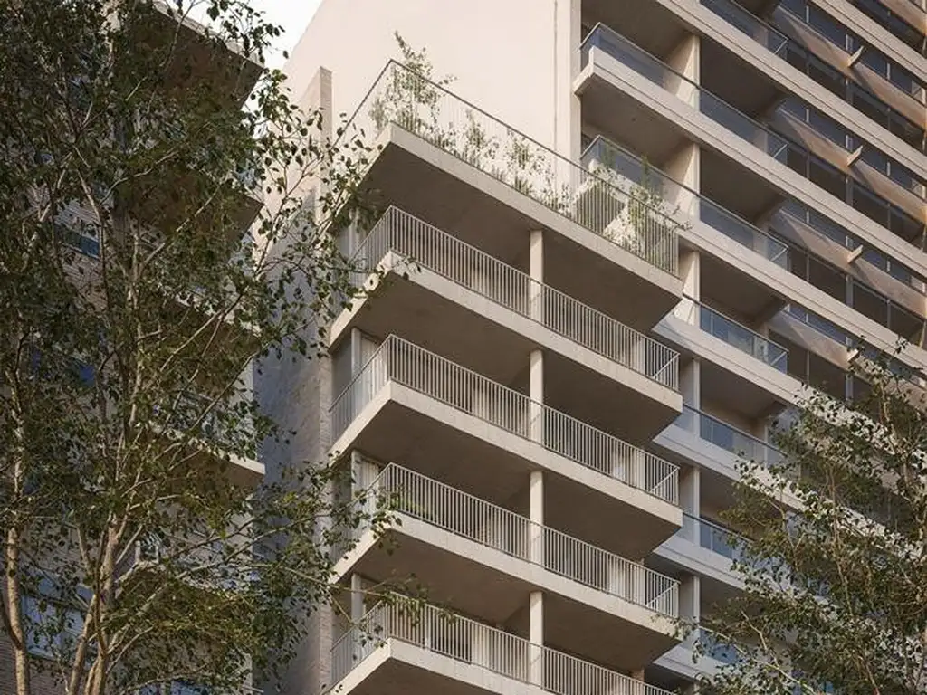 FICHA TéCNICA: TERMINACIONES: Mesada cocina y baños en Pura Stone o similar. Pisos de Porcelanato de primera línea. Grifería FV o similar. Artefactos Sanitarios Ferrum o similar. Mampara Ducha Blindex. Vidrio DVH + Control Solar. Aberturas Unidades en Aluminio Anodizado. Detalles en Hormigón Visto.