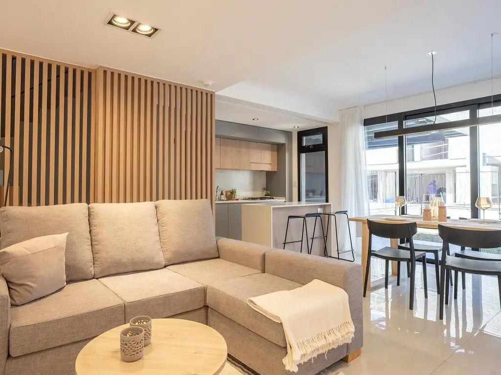 FICHA TECNICA: Excelente calidad a estrenar con pisos de porcelanato, mobiliario de cocina tope de gama con bajo mesadas, alacena en Mdf18mm laminados con filos de PVC de 2mm inyectados, zócalos de acero inoxidable, bacha de acero inoxidable, mesada de granito con doble re-grueso, revestimiento en paredes, doble muro compuesto aislado para máxima calidad térmica, terminación con yeso en paredes y cielorraso, cerramientos de aluminio de alta prestación con vidrios DVH(doble vidriado hermético), puerta de seguridad para ingreso con cerradura multianclaje y llaves exclusivas en blíster, puertas interiores de PVC o similar de alta prestación, climatización por radiadores y preinstalación de A/A, agua caliente por caldera, tanques de agua, cisterna general con bombas de presión, llenado de piletas y riego de espacios verdes con bomba aparte, baños con loza sanitaria y griferías de primeras marcas, bañeras, accesorios de baño y espejo, instalación para extractores. Placares completos con interiores. Además, el complejo cuenta con terraza común con solárium, gimnasio, y plaza intervenida por Crucijuegos.