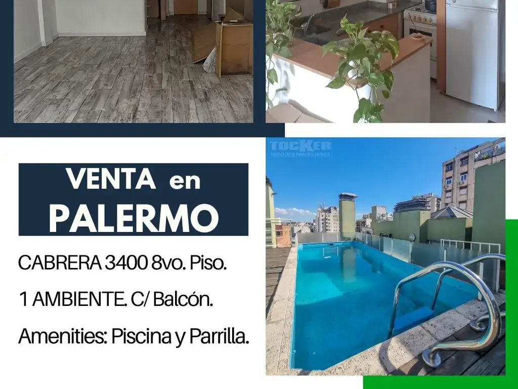 1 amb edificio con piscina y parrilla de uso común.