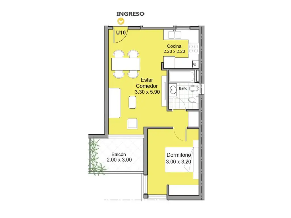 Departamento 1 dormitorio espacioso con cocina americana y salida a balcón amplio al frente. Habitación con acceso al voladizo sobre calle Alvear. Baño completo.