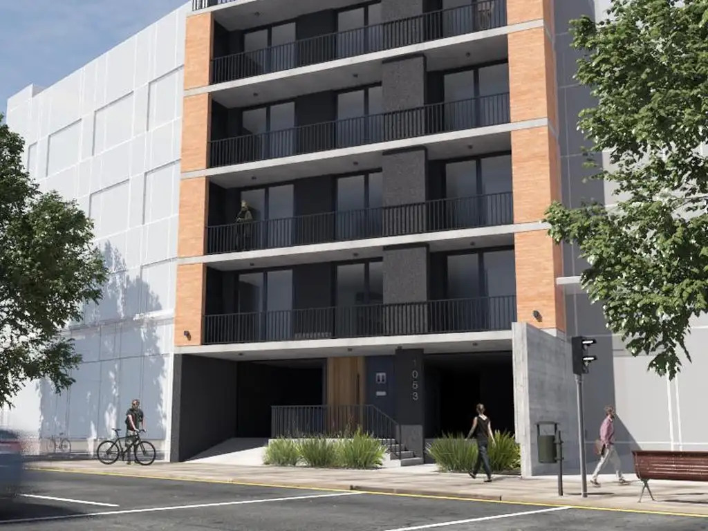 - Revestimiento acrílico impermeable auto-texturable combinado con herrería de diseño y ladrillo a la vista. - Amplios canteros en acceso al edificio. - Portero visor color.