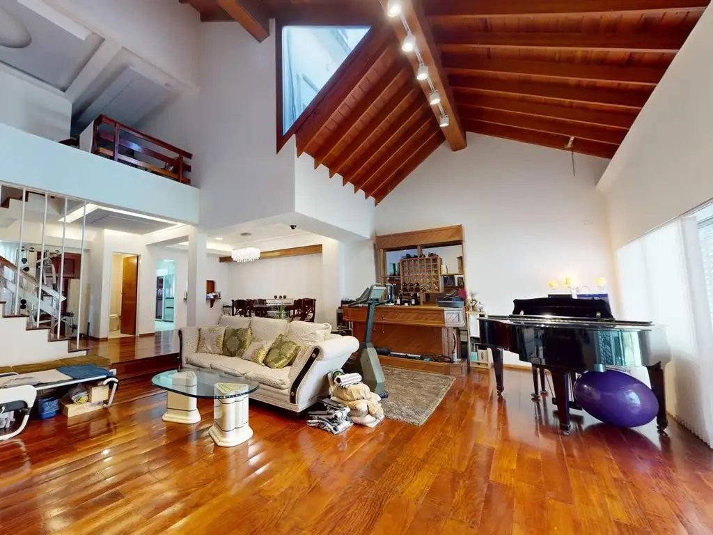 A continuación, un espléndido living con techo de triple altura te dará la bienvenida, destacándose como uno de los mayores atractivos, ideal para recibir invitados o simplemente relajarte. Se suma un toilette en planta baja.