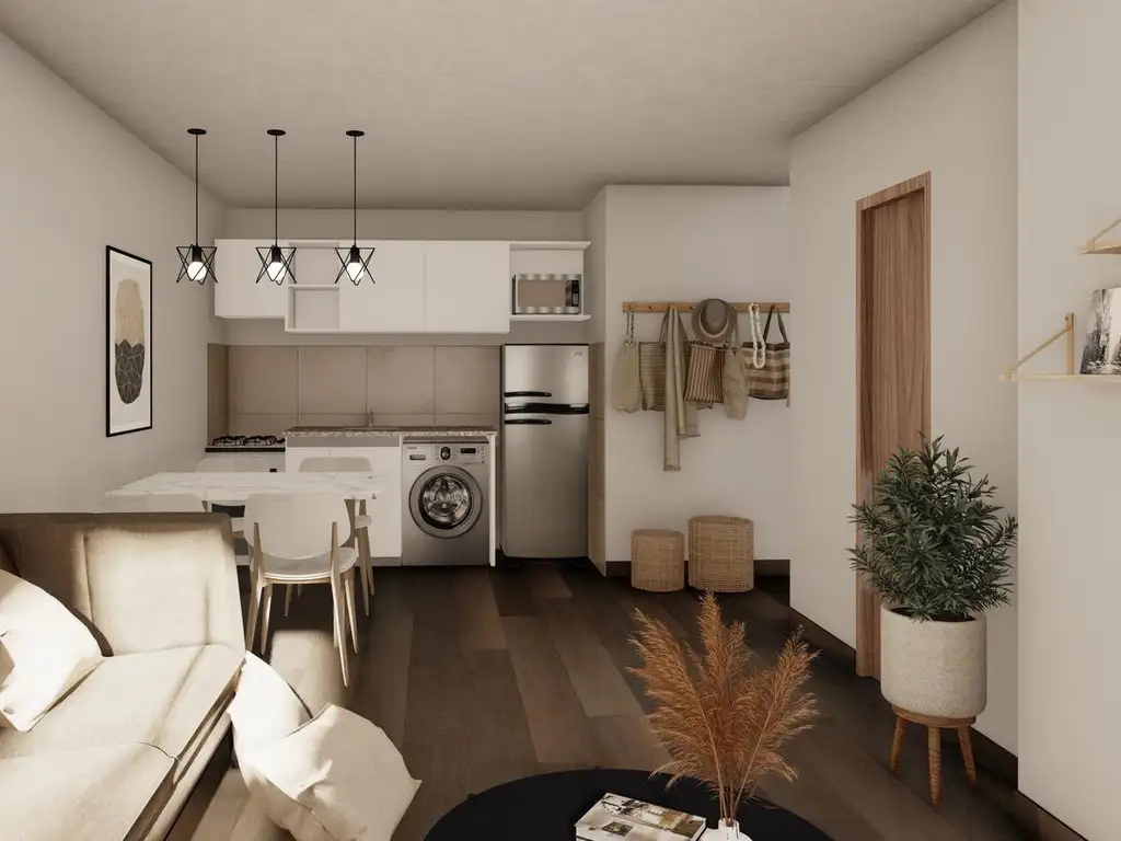 Departamentos con perfectos lineamientos arquitectónicos, refugio de valor y preparados para renta. Perfecta calidad constructiva y riguroso control de obra con terminaciones modernas y prolijas. Pisos de porcelanato símil madera en todo el departamento, aberturas de aluminio línea Módena, persianas de enrollar de PVC en dormitorios, puertas de madera, yesería tradicional en cielorraso, frentes de placar con puertas corredizas e interiores completos colocados, agua caliente por termotanques eléctricos, pico de gas previstos para estufas y tomas colocados a altura para la instalación de aires acondicionados. Cocinas con mobiliario completo de bajo mesadas, alacenas, bachas de acero inoxidable, mesada de granito, espacio técnico para heladera y lavarropas, cocina a gas instalada, correctas banquinas y revestimiento en paredes. Baños con loza sanitaria, vanitory, accesorios y griferías de primeras marcas, revestimiento en paredes hasta el techo, extractor y espejos colocados.