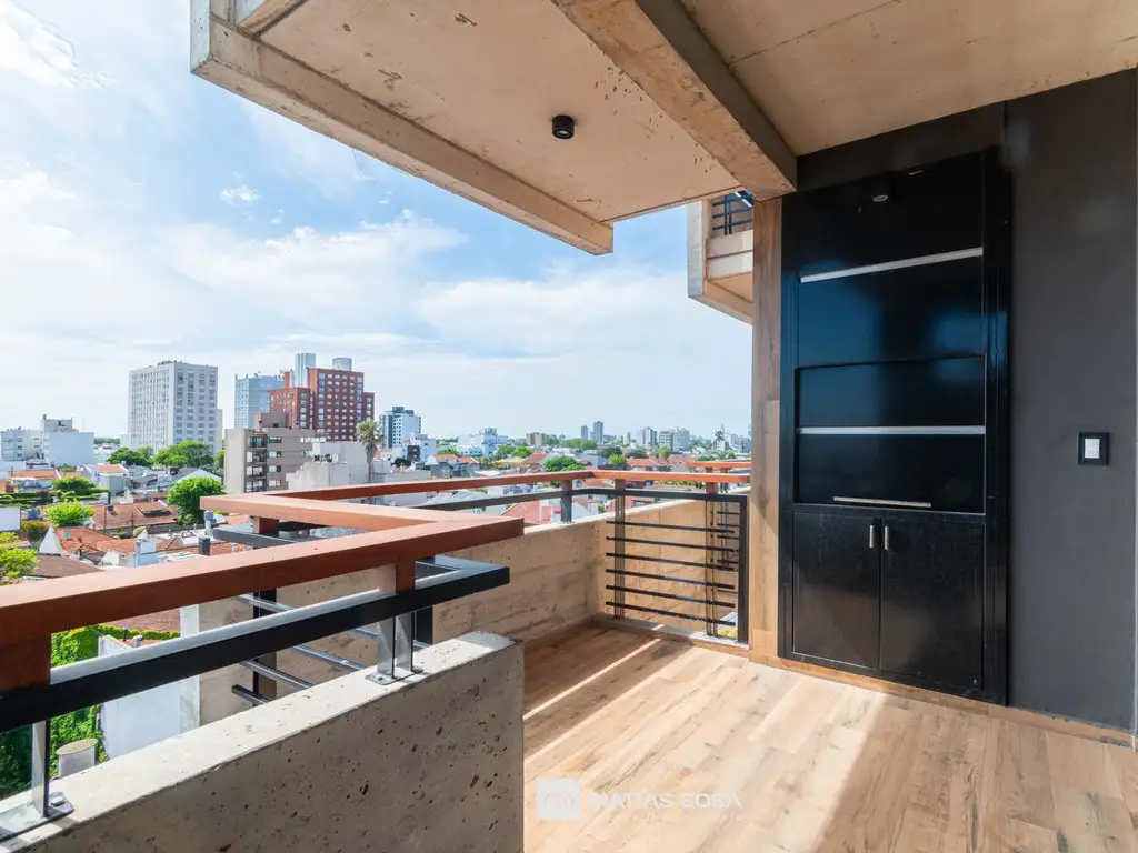 Orientación vereda de sol, excelente luminosidad. La unidad es a estrenar, se compone de un amplio estudio con cocina integrada, espacio de guardado y baño completo. Excelente calidad constructiva. El edificio cuenta con quincho y terraza de uso común, equipada para 20 personas.Cocheras descubiertas disponibles.