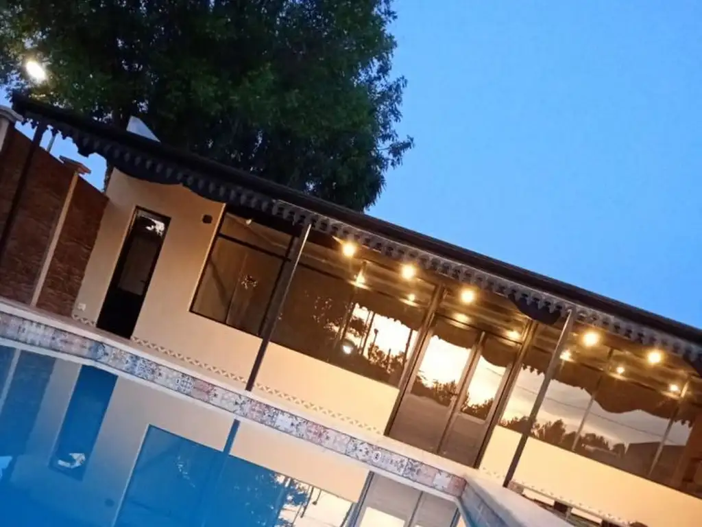 La propiedad cuenta con un quincho de 5mts de ancho por 12mts largo totalmente cerrado todo vidrio con mesada, bajo mesada y alacena.Baño completo (posibilidad de un dormitorio con vestidor). Ademas posee galeria de 3mts de ancho por 12mts de largo con parrilla. Posee piscinia de 4,5mts por 8,5mts.