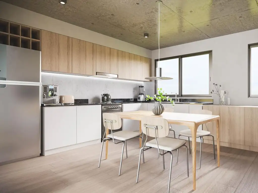 En este caso, la unidad que presentamos tiene dos dormitorios. Se ingresa al ambiente de living-comedor con la cocina semiintegrada, separada por una barra desayunadora con salida a un balcón al frente con orientación NORTE. Hacia el contrafrente encontramos un baño completo, el dormitorio principal de mayores dimensiones y el dormitorio secundario.