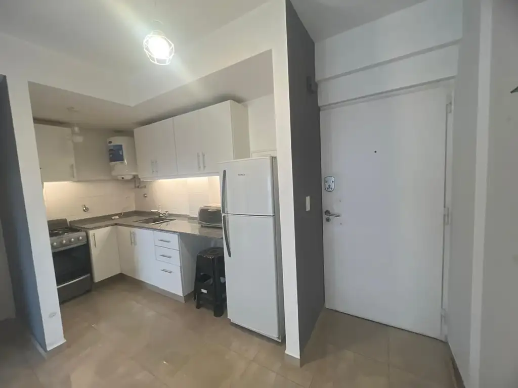 Este luminoso departamento ubicado en un 7ºpiso dispone de un amplio living comedor con salda al balcón, cocina integrada equipada con muebles altos y bajos,dormitorio con placar empotrado, baño completo y cochera.