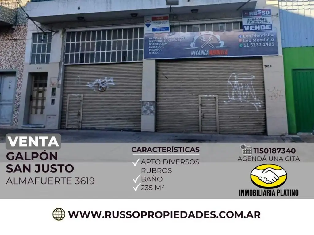 Galpón ubicado en zona industrial, con una superficie total de 235 m². Cuenta con un amplio espacio de trabajo, ideal para actividades productivas, logísticas o de almacenamiento.