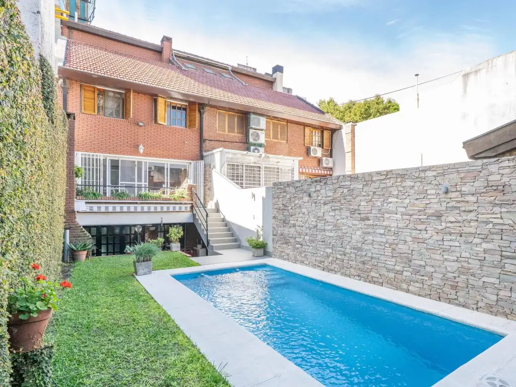 Garaje para 3 autos y uno mas en la bajada de ingreso al garaje. Portones automáticos para el ingreso a cochera. Sala de maquina, bomba cloacal , grupo electrógeno trifásica Briggs y Stratton 10 Kva opcional a gas, caldera Peisa con 2 bombas Rowa para ayudar la circulación de agua. Lavadero, Habitación de servicio con bano. Tanque cisterna mas bomba, termotanque Rheen de alta recuperación. QUINCHO con Parrilla de 1,2 mas mesada, cocina gastronómica de 5 hornallas y un horno grande. PILETA con bomba y Salinizador, Climatizador a gas.